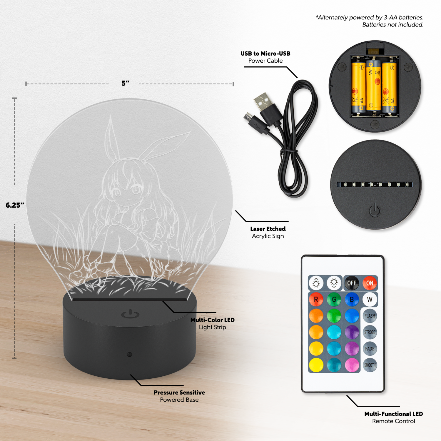 Add a playful charm to your space with our captivating Bunny Girl LED Sign! Featuring a delightful bunny girl laser-etched into premium acrylic, this sign is illuminated with vibrant LED colors that bring the design to life. Use the simple remote control to customize your ambiance—select from 16 dazzling colors, create a fun flash or strobe effect, or enjoy a smooth fade between hues. You can even adjust the brightness to perfectly suit your mood or decor.