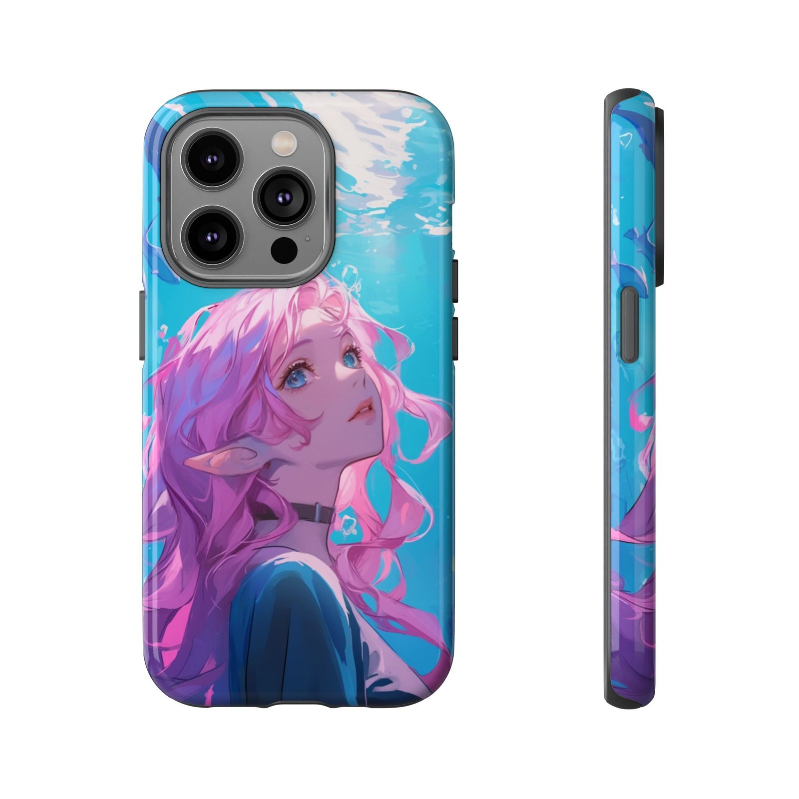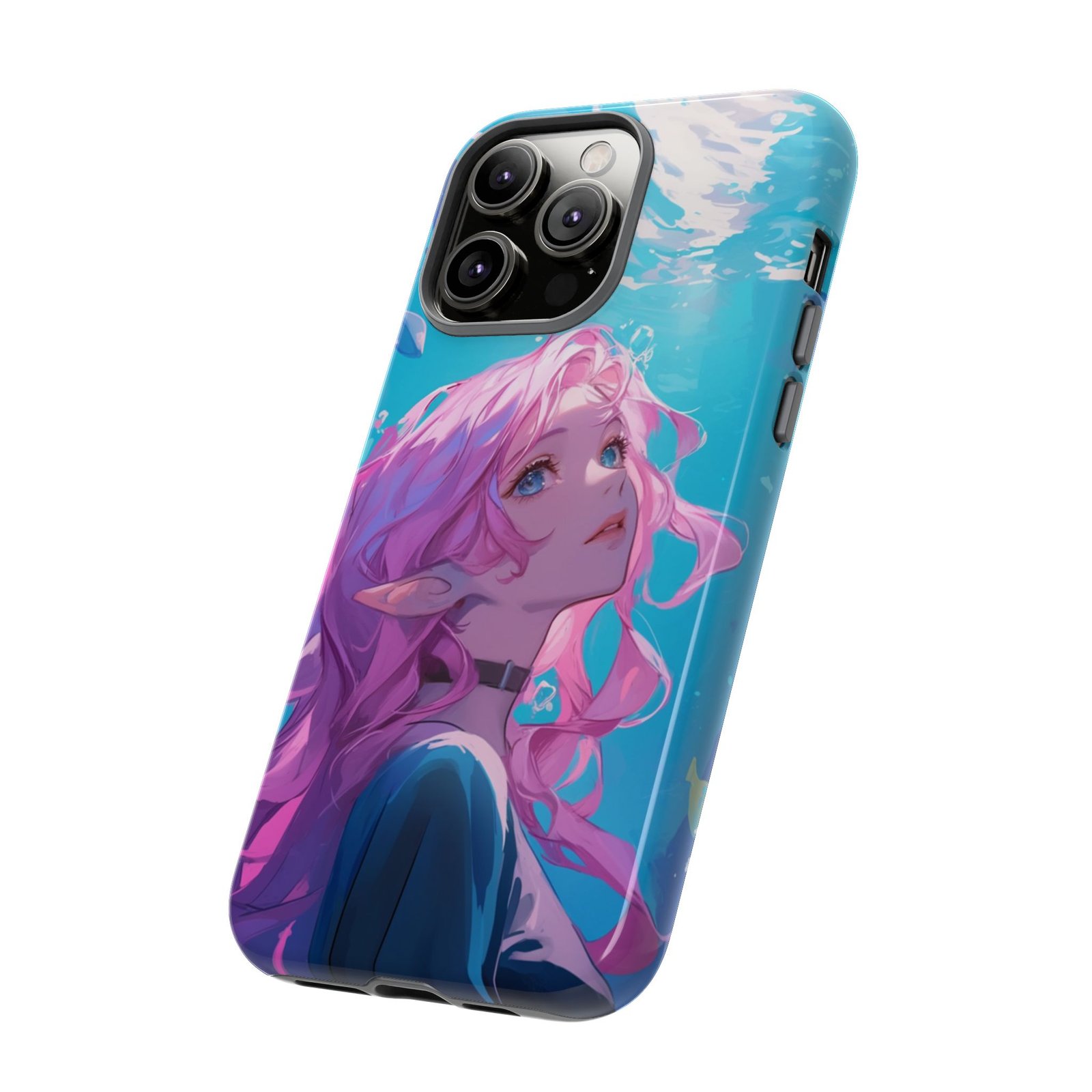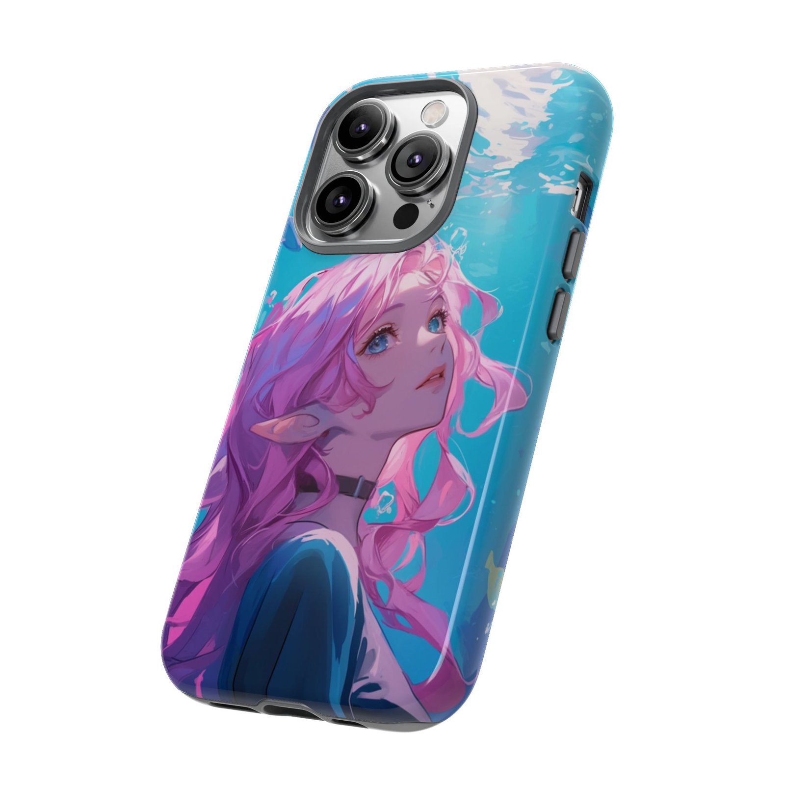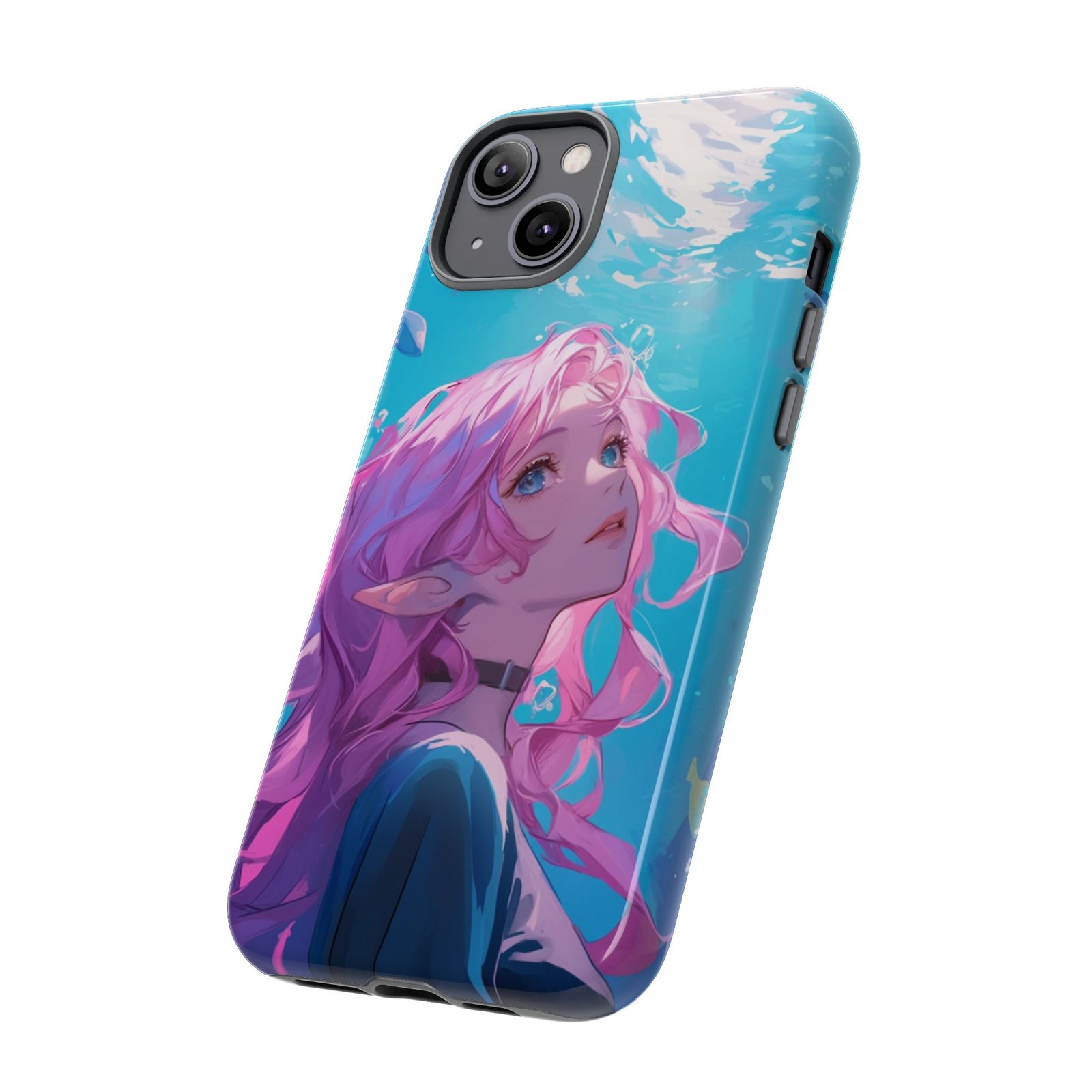 Dive into a world of fantasy with our Pink-Haired Elf Aquarium Phone Case! This enchanting case features a serene pink-haired elf gracefully floating in an ethereal underwater scene. It’s not just a phone case; it’s a portal to a magical realm every time you pick up your device.