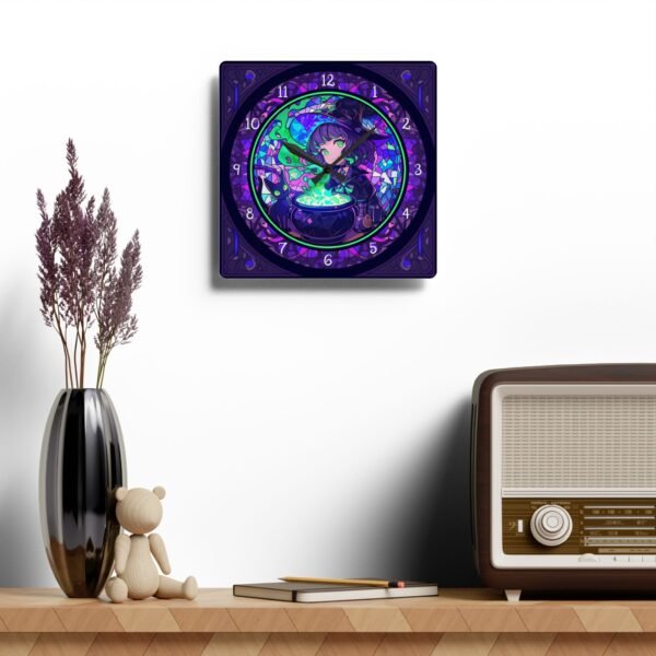 This acrylic wall clock features a witch with cauldron design, adding a touch of magic and mystery to your home decor. Perfect for Halloween enthusiasts and fans of the occult, this clock brings a bewitching vibe to any room. It’s ideal for Halloween decorations and spooky-themed home interiors.