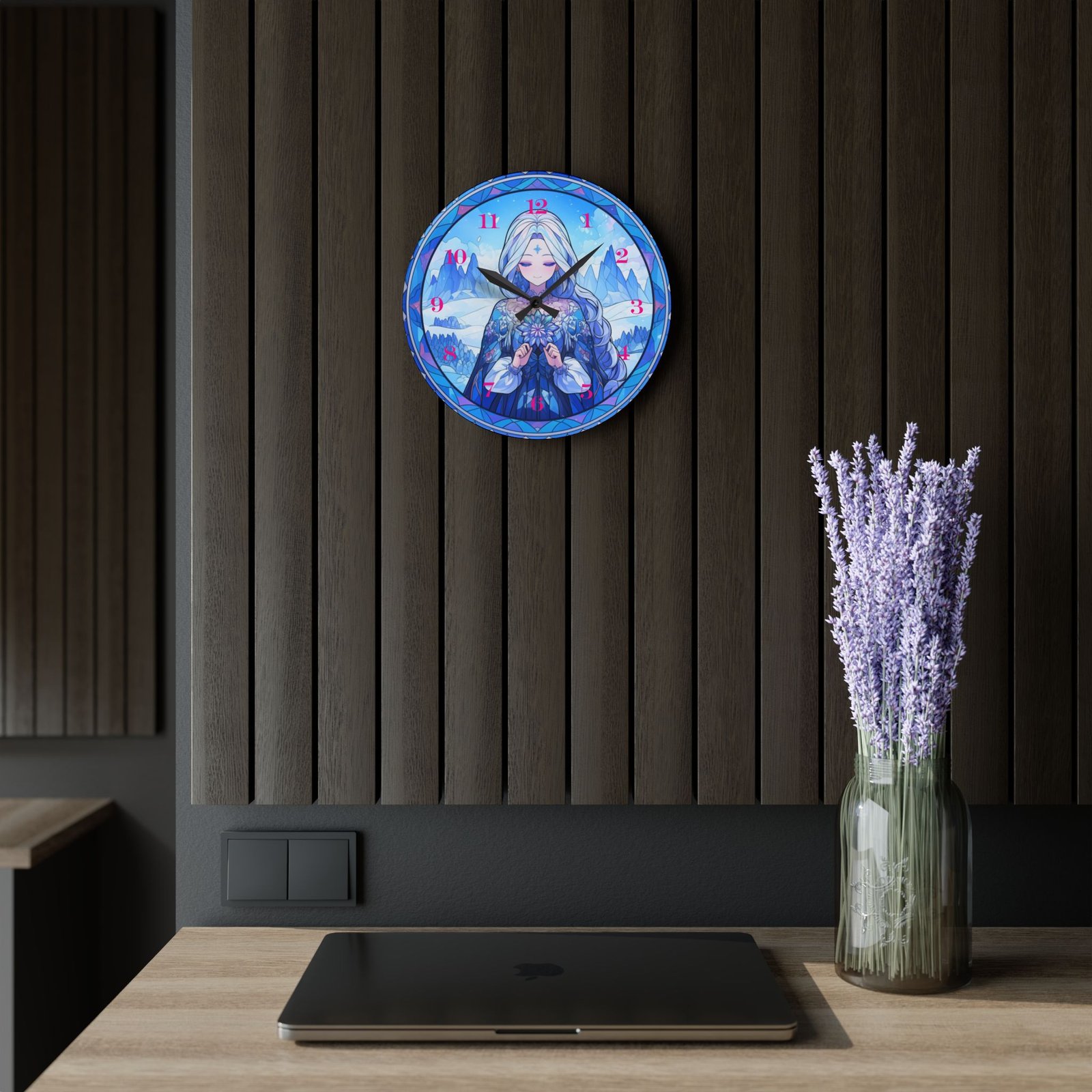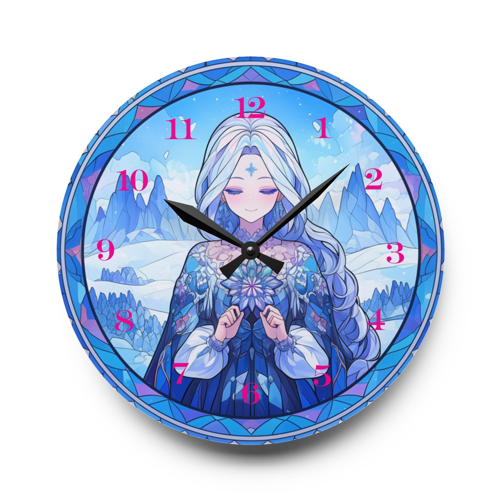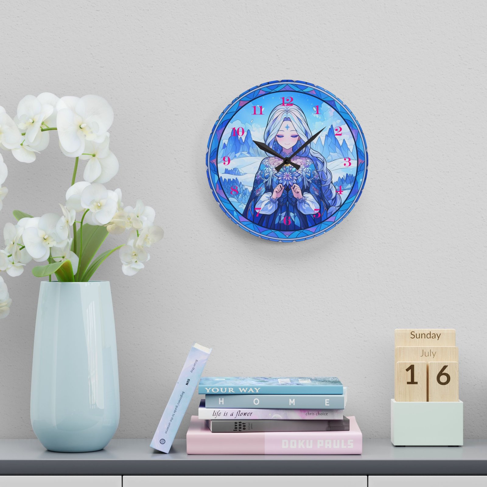 This Wall Clock features delicate ice crystal patterns inspired by Yuki-Onna, giving a cool and elegant vibe to any room. Perfect for those who appreciate unique and artistic home decor pieces. Ideal for winter season, Christmas, and Japanese folklore enthusiasts.